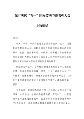 在全市庆祝“五一”国际劳动节暨表彰大会上的讲话.docx