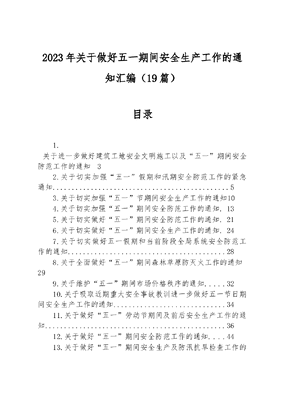 (19篇)2023年关于做好五一期间安全生产工作的通知汇编.docx