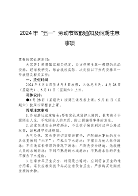2024年“五一”劳动节放假通知及假期注意事项.docx