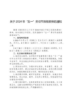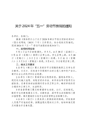 2024年“五一”劳动节放假安排及安全工作要求的通知.docx