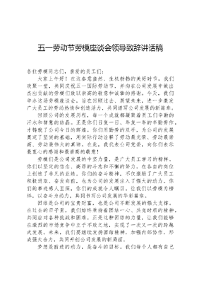 五一劳动节劳模座谈会领导致辞讲话稿.docx