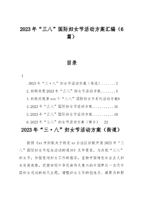 (6篇)2023年“三八”国际妇女节活动方案汇编.docx