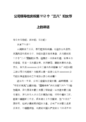 公司领导在庆祝第112个“三八”妇女节上的讲话.docx