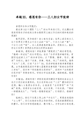 卓越XX、感恩有你——三八妇女节致辞.docx