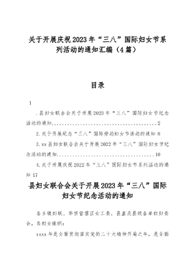 (4篇)关于开展庆祝2023年“三八”国际妇女节系列活动的通知汇编.docx