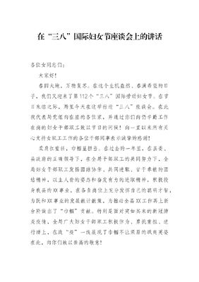 在纪念“三八”国际劳动妇女节座谈会上的讲话.doc