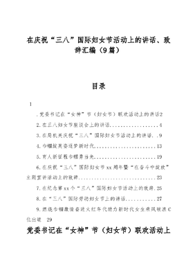 (9篇)在庆祝“三八”国际妇女节活动上的讲话、致辞汇编.docx