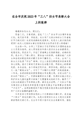 在全市庆祝2023年“三八”妇女节表彰大会上的致辞).docx
