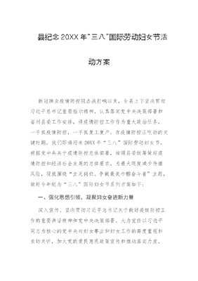 县纪念20XX年“三八”国际劳动妇女节活动方案.doc
