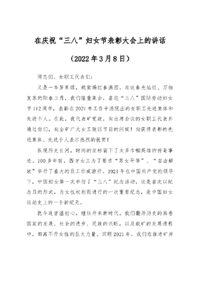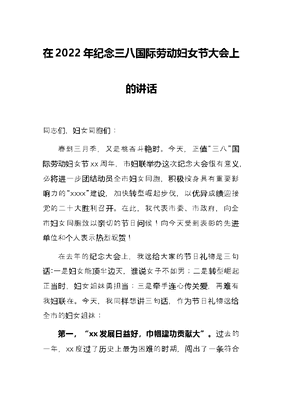 在2022年纪念三八国际劳动妇女节大会上的讲话.docx