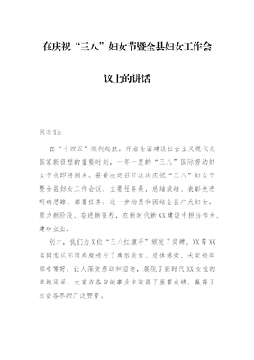 在庆祝“三八”妇女节暨全县妇女工作会议上的讲话.docx