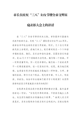 市长在庆祝“三八”妇女节暨全市文明家庭表彰大会上的讲话.docx