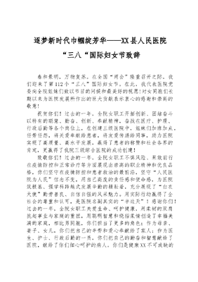 逐梦新时代+巾帼绽芳华——XX县人民医院“三八“国际妇女节致辞.docx