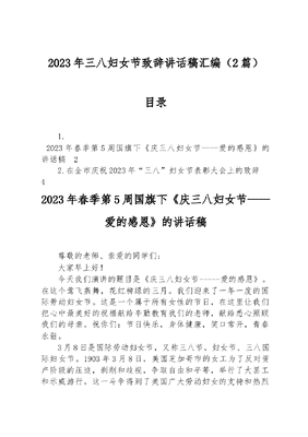 (2篇)2023年三八妇女节致辞讲话稿汇编.docx