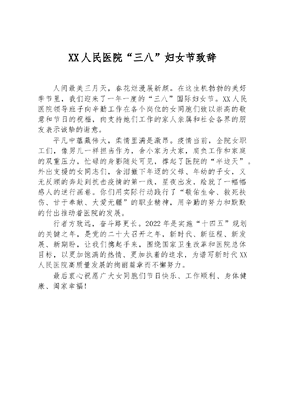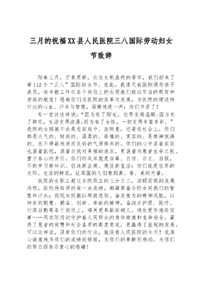 三月的祝福+XX县人民医院三八国际劳动妇女节致辞.docx