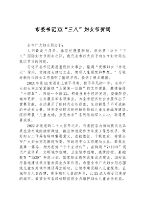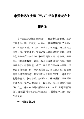 市委书记在庆祝“三八”妇女节座谈会上的讲话.docx
