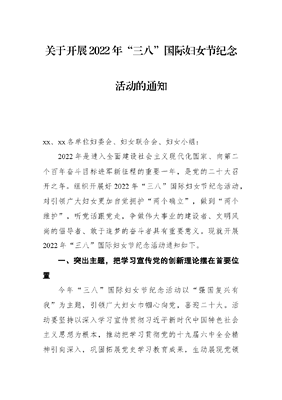 关于开展2022年“三八”国际妇女节纪念活动的通知.docx