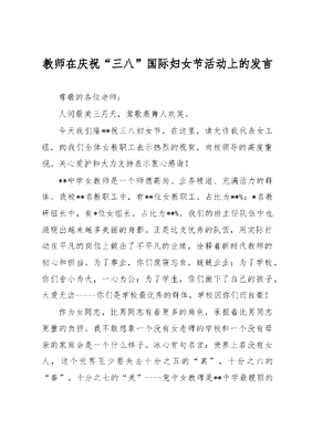 教师在庆祝“三八”国际妇女节活动上的发言.docx