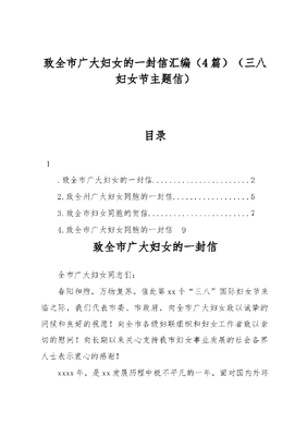 (4篇)致全市广大妇女的一封信汇编(三八妇女节主题信).docx