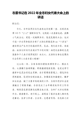 市委书记在2022年全市妇女代表大会上的讲话.docx