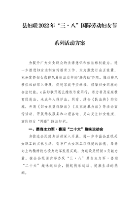 县妇联2022年“三·八”国际劳动妇女节系列活动方案.docx