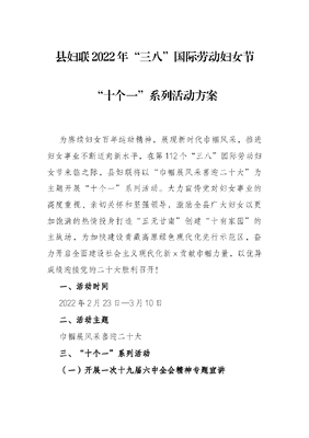 县妇联2022年“三八”国际劳动妇女节“十个一”系列活动方案.docx
