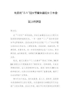 在庆祝“三八”妇女节暨全县妇女工作会议上的讲话.doc