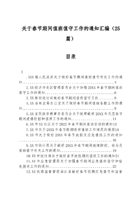 (25篇)关于春节期间值班值守工作的通知汇编.docx