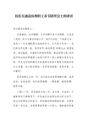 校长在离退休教职工春节团拜会上的讲话.docx