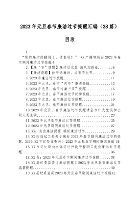 (38篇)2023年元旦春节廉洁过节提醒汇编.docx