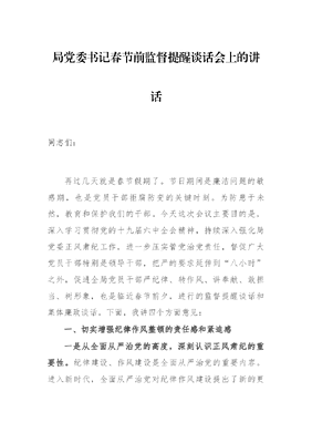 局党委书记春节前监督提醒谈话会上的讲话.docx