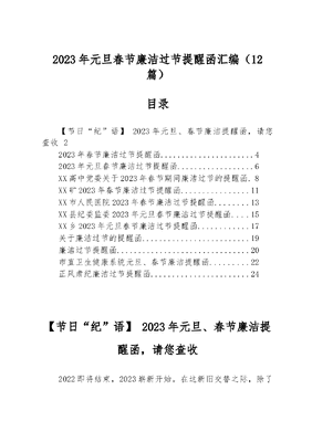 (12篇)2023年元旦春节廉洁过节提醒函汇编.docx