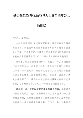 县长在2022年全县各界人士春节团拜会上的讲话.docx