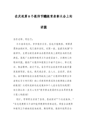 在庆祝第X个教师节暨教育表彰大会上的讲话.docx