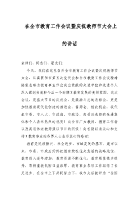 在全市教育工作会议暨庆祝教师节大会上的讲话.docx