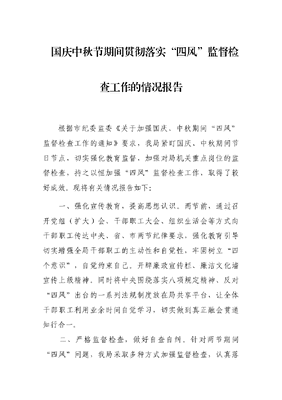 国庆中秋节期间贯彻落实“四风”监督检查工作的情况报告.docx