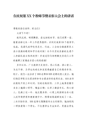 在庆祝第XX个教师节暨表彰大会上的讲话.docx