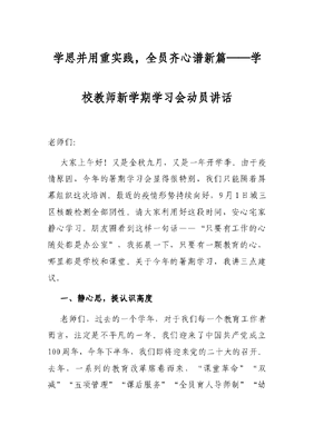 学思并用重实践,全员齐心谱新篇——学校教师新学期学习会动员讲话.docx