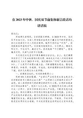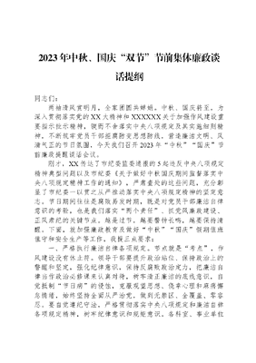 2023年中秋、国庆“双节”节前集体廉政谈话提纲.docx