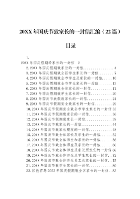 (22篇)20XX年国庆节致家长的一封信汇编.docx