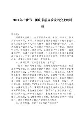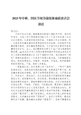 2023年中秋节、国庆节前廉政谈话会上的讲话.docx