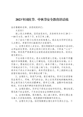 2023年国庆节、中秋节安全教育讲话稿.docx