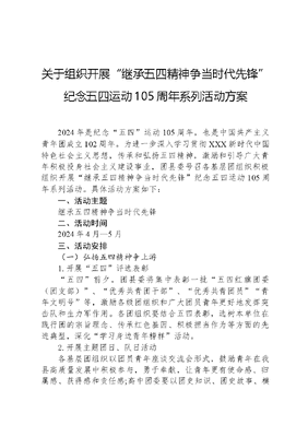 关于组织开展“继承五四精神争当时代先锋”纪念五四运动105周年系列活动方案.docx
