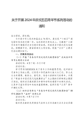 关于开展2024年庆祝五四青年节系列活动的通知.docx