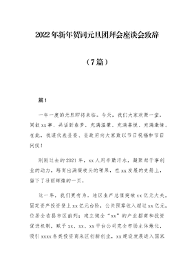 (7篇)2022年新年贺词元旦团拜会座谈会致辞.docx
