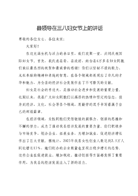 县领导在三八妇女节上的讲话.docx