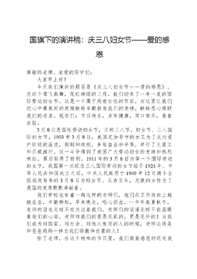 国旗下的演讲稿:庆三八妇女节——爱的感恩.docx