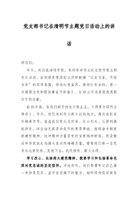 党支部书记在清明节主题党日活动上的讲话.docx