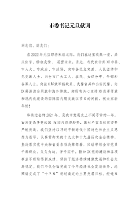市委书记元旦献词.docx