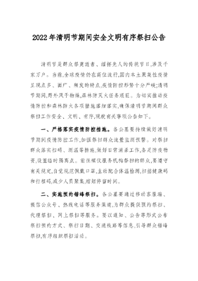 2022年清明节期间安全文明有序祭扫公告.docx